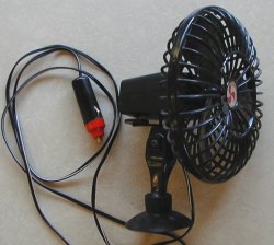 Your best tool against frost buildup: a cheap little 12V fan. These can be found in junk stores or can be purchased new for just a few bucks. Don't bother to get a really good one... the cheapest all plastic units work just great. I got mine used for $3 at a junk store. |
