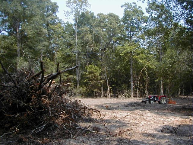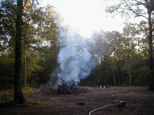 When the initial rough land clearing was done, I had what could only be described as "blasted earth". It looked like several small bombs had gone off out there! Plus, I had a burn pile that was bigger than my RV! These shots will give you some idea.