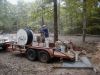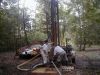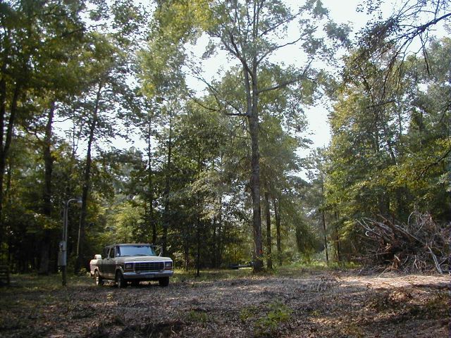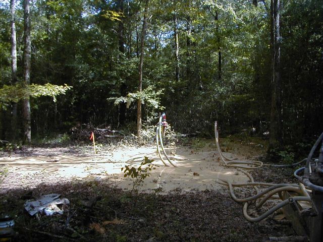 By the first part of October, 2002, I had a big chunk of relatively flat dirt, lots of trees, a huge burn pile, and darn little else. The next thing that needs to be done is to get a well drilled! I contacted with a local well driller, and he moved his equipment out onto the property and a well site was selected. I came out and took some pictures of them getting started.