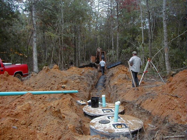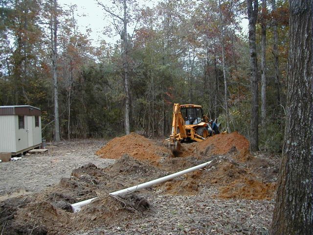 Finally, the week before Thanksgiving, the septic installers were able to get out on the property. The ground hadn't really dried out, but at least it was possible for them to dig. And, dig they did! I had pipe run for two buddy pads, an RV port attached to the house and, of course, the future house itself. Two 500 gallon cement tanks and about 240 feet of chambered leach line were installed and covered over. Barely had they gotten the ditched closed before it started to rain again!