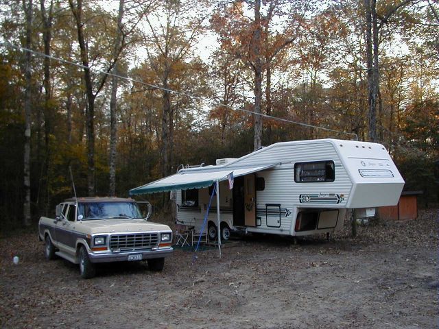 Finally, after a short dry spell, I was able to move the rig out onto my land and actually live there for a few days. I would only be able to stay for a short while, though, as it was now time for my scheduled trip out West to recover all of my stored property! As you can see from the pix, the leaves are falling!