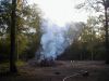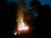 The weather did not cooperate... heavy rain and thunderstorms delayed the drilling process. However, the rain made it possible for me to light off the huge burn pile safely. One very early morning, while the surrounding woods were still wet, I poured some diesel fuel on the pile and lit it off. It burned like crazy, shooting flames at least 30 feet into the air, and a tower of sparks floated up out of sight. I had laid out hose and a pump, borrowed from the well drillers, in case I needed to control the blaze, but it went very well, and a large portion of the pile was turned to ashes. Now, I will need to push the unburned remains together and burn it again.