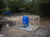 Taking advantage of a break in the rainy weather, I spent a couple of days building the well house. I managed to get it completed and stained before the rains started again.