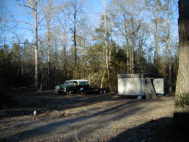 The trip was nothing short of brutal. I covered about 4400 miles in 7 days of driving. I drove for 14-16 hours a day, three days out, three days back. Once I got to be thoroughly numb, it hardly hurt at all! :-) Finally, I had it all piled in one place, out on the property. These shots are in mid January, right after I moved out to the land for good. Been there ever since!!